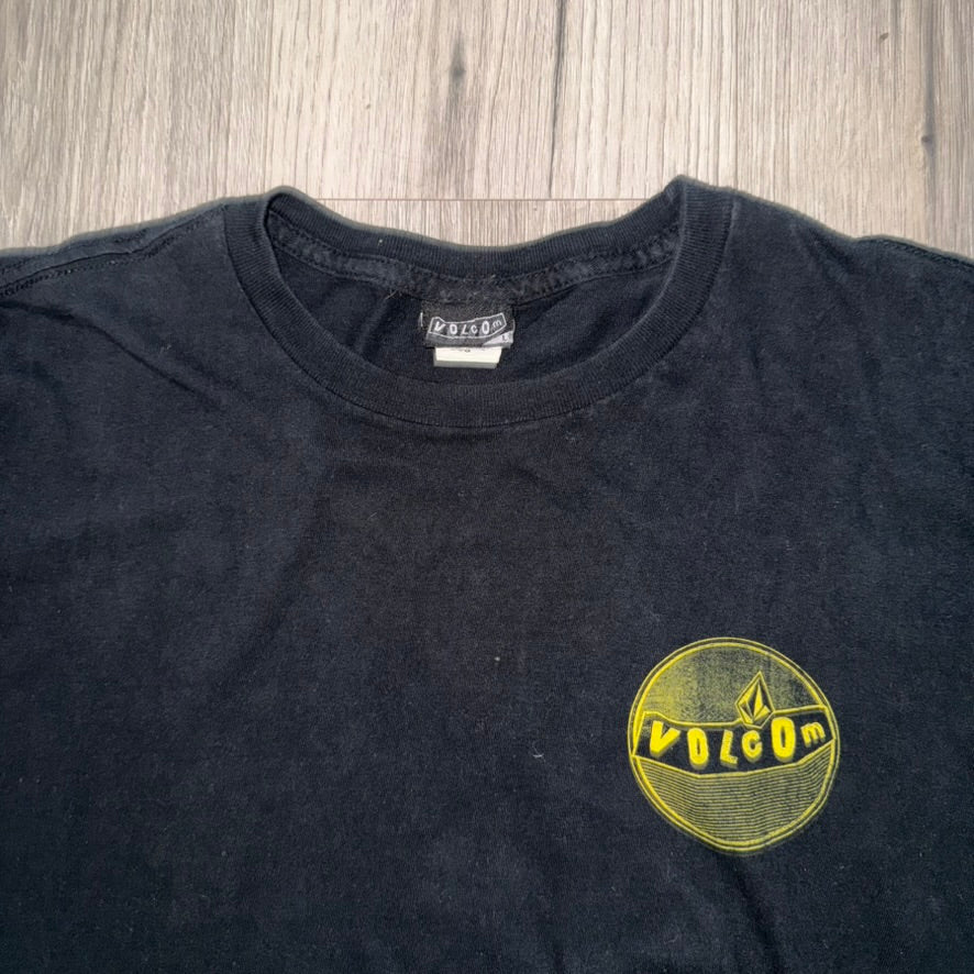 Vintage Black Volcom T Shirt With Yellow Graphics Front and Back.