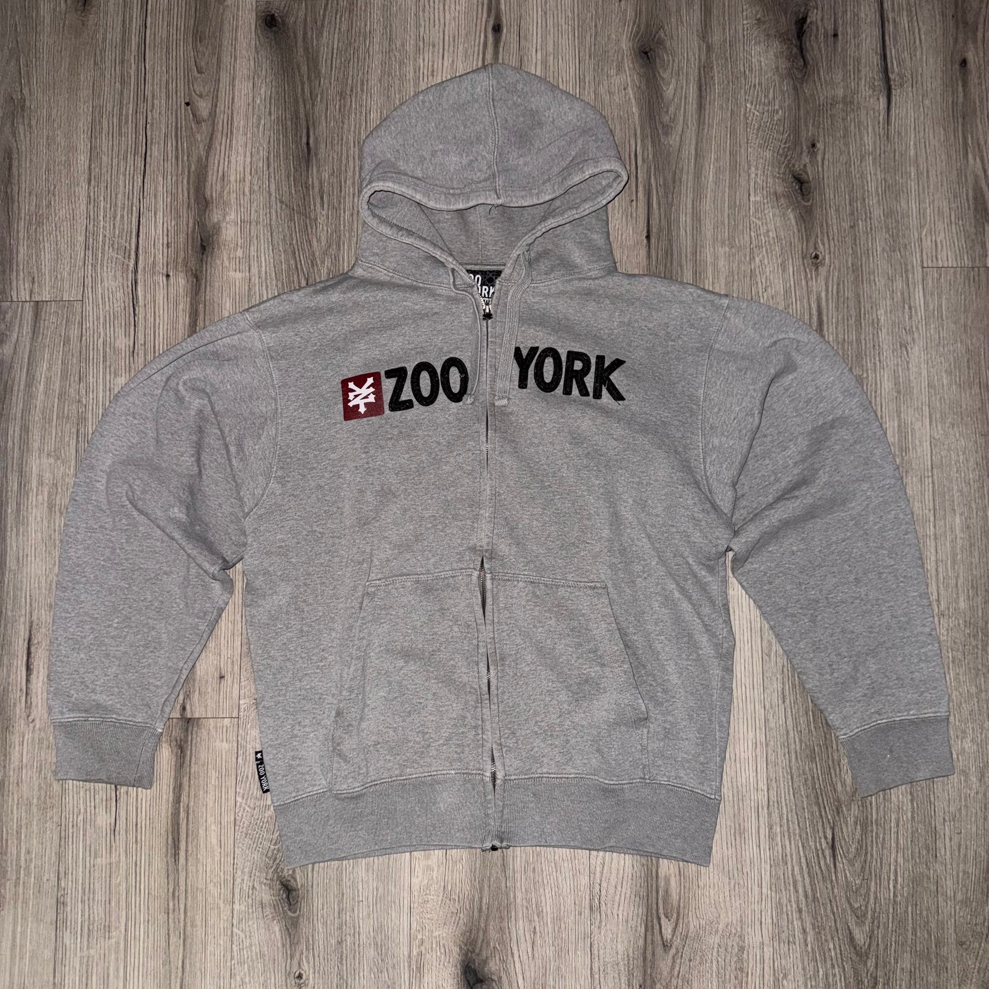 Gray Zoo York Zip Up Hoodie With Spell Out Text.